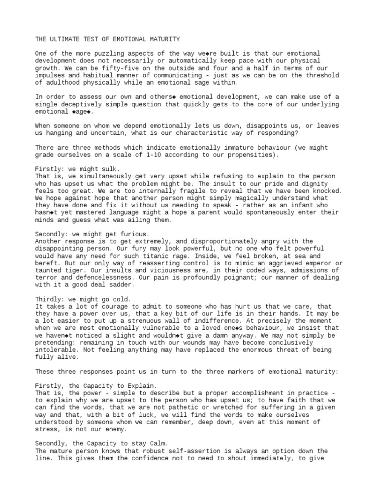 The Ultimate Test Of Emotional Maturity The School Of Life Articles Formerly The Book Of Life
